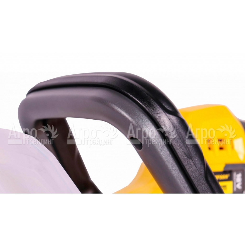 Характеристики товара: Аккумуляторный кусторез Champion HTB1811 (без аккумулятора и зарядного устройства)Подробное описание товараАккумуляторный кусторез Champion HTB1811 будет полезен на даче, в саду, приусадебном участке, парке. С его помощью можно быстро и качественно привести в порядок зелёные насаждения, придав им привлекательный эстетический вид. Данная модель подходит для изготовления живых изгородей и других аналогичных элементов ландшафтного дизайна. Особенностью агрегата является качество сборки, надёжная работа всех узлов, простота эксплуатации и продуманная система безопасности. В основе кустореза лежит компактный и мощный электродвигатель. Мотор бесщёточной конструкции. Это означает, что он потребляет совсем немного электроэнергии, не перегревается даже при интенсивной работе, не требует к себе внимания весь срок службы. Запускается силовая установка нажатием одной клавиши, расположенной на эргономичной ручке. Питание электрооборудование получает от небольшого литий-ионного аккумулятора (в комплект не входит). Для батарей этого типа характерна способность полностью заряжаться за несколько часов. Они не имеют эффекта памяти и саморазряда. Режущая часть машины представлена пилой с двумя лезвиями разнонаправленного действия. Длины пилы вполне достаточно, чтобы удобно работать с дальними ветвями. Специальный щиток защищает руки оператора от разлетающихся острых опилок и случайного соскальзывания с рукоятки. Чтобы научится пользоваться инструментом, понадобится совсем немного времени. |