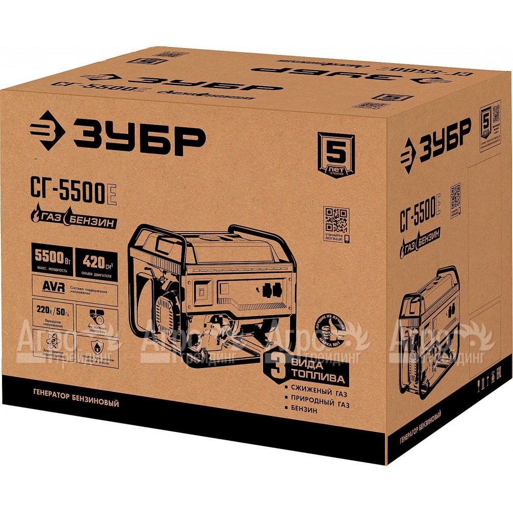 Бензин-газовый генератор Зубр СГ-5500Е 5.5 кВт