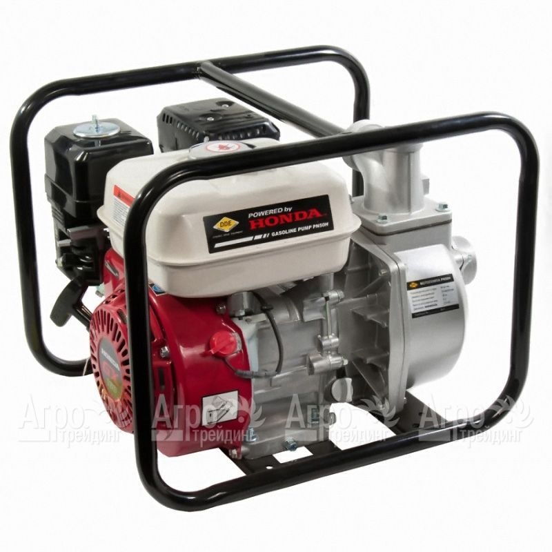 Характеристики товара: Бензиновая мотопомпа DDE PN50HПодробное описание товараАвтономная, высокопроизводительная бензиновая мотопомпа DDE PN50H позволяет выполнять большие объемы работ по перекачке воды, например, организовать полив на полях, откачать воду из затопленных подвалов, котлованов и пр. Комплектуется высоконадежным двигателем Honda, который мало токсичен и экономичен в расходе топлива, запускается при помощи ручного стартера. Металлическая рама, куда размещена мотопомпа, обеспечивает защиту от повреждений, надежную устойчивость на поверхности и удобство при транспортировке. Мотопомпа DDE PN50H компактна и обладает небольшим весом благодаря алюминиевому корпусу. Проста в эксплуатации и обслуживании, имеет отличную сервисную поддержку.
