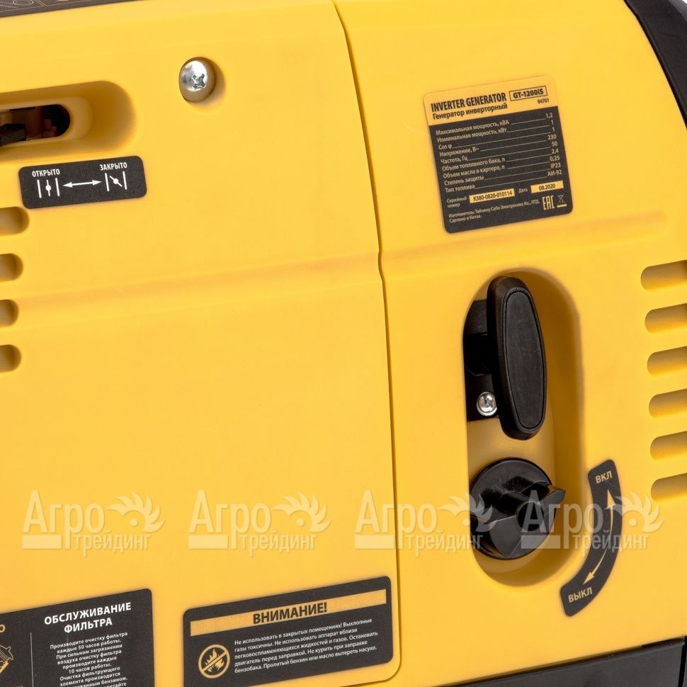 Характеристики товара: Бензогенератор инверторный Denzel GT-1200 iS 1 кВтПодробное описание товараИнверторный генератор Denzel GT-1200 iS 1 кВт широко применяется для автономного электропитания различных приборов при отсутствии электросети. Устройство оснащено мощным четырехтактным двигателем, за счет которого удается минимизировать расход топлива, снизить уровень шума, обеспечить максимальную производительность и продлить эксплуатационный период. Отдельного внимания заслуживает вместительный топливный бак, способствующий непрерывному и продолжительному рабочему процессу. Кроме того, данный генератор имеет сравнительно небольшой вес и компактные размеры, что значительно упрощает его хранение и транспортировку. Также к числу достоинств модели относится наличие защиты от работы при низком уровне масла. Повысить комфорт для пользователя позволяет улучшенная антивибрационная система. |