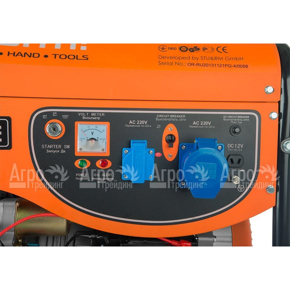 Характеристики товара: Бензогенератор Sturm PG87651E 6 кВтПодробное описание товараБензогенератор Sturm PG87651E используется во время строительных работ, а также для резервного питания частных домов. Мощный четырехтактный двигатель гарантирует стабильную работу электрических приборов и инструментов. Счетчик моточасов позволит своевременно проводить техническое обслуживание, благодаря этому продлевается работа агрегата. Защитный механизм позволяет контролировать уровень масла бензогенератора. Автоматизированный регулятор напряжения обеспечивает стабильный поток электроэнергии на выходе бензинового генератора Sturm PG87651E. Электростартер позволяет запускать агрегат с помощью ключа, как в автомобиле. Комфортная эксплуатация возможна вследствие отсутствия повышенного уровня шума. Благодаря ручке и двум колесам инструмент легко и удобно транспортировать на место установки.