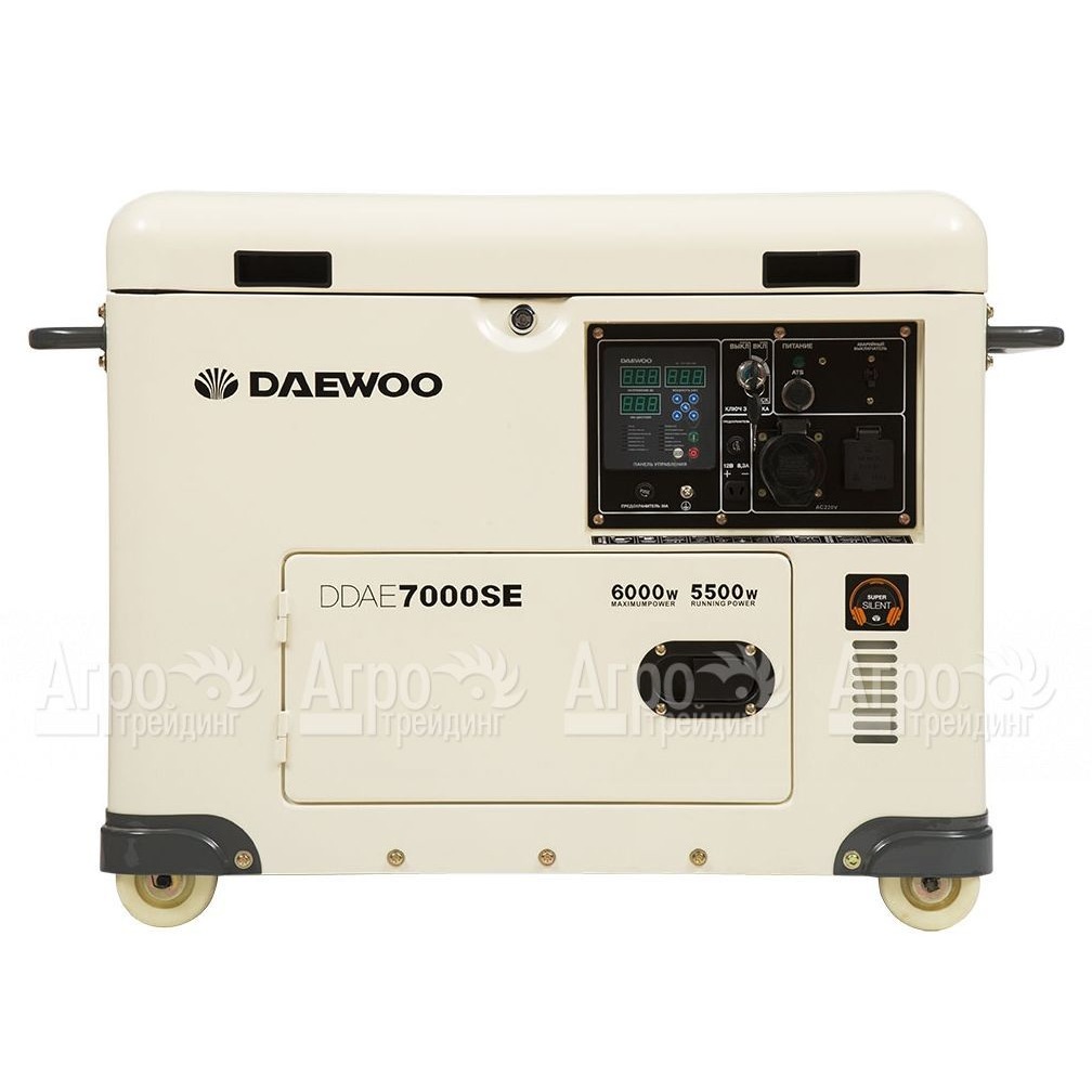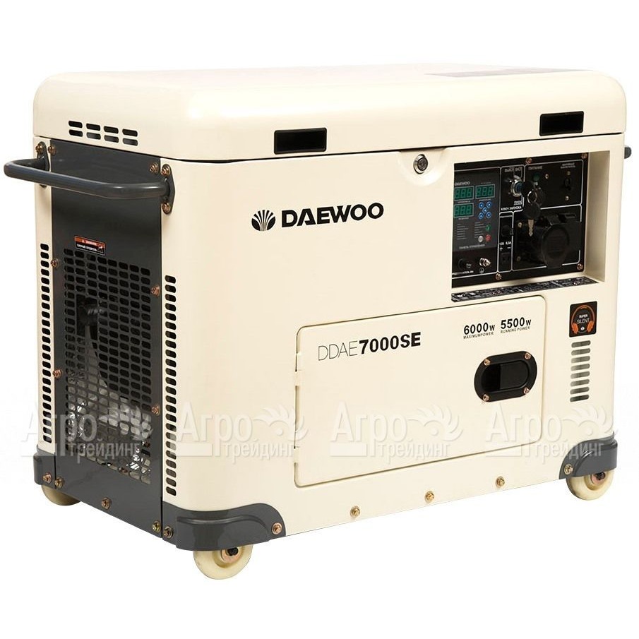 Характеристики товара: Дизельгенератор Daewoo DDAE 7000 SE 5.5 кВтПодробное описание товараДизельгенератор Daewoo DDAE 7000 SE предназначен для питания однофазных потребителей общей мощностью не выше 6 кВт. Выполнен в шумоизолирующем кожухе Super Silent, который обеспечивает гашение шумов и вибрации, а также защиту внутренних узлов от внешних воздействий. Топливо закачивается в двигатель в автоматическом режиме с помощью топливного насоса высокого давления и специальной форсунки, что делает работу двигателя стабильной и на 15% экономит топливо. Профессиональный двигатель обладает ресурсом более 2000 часов, стартер и аккумулятор позволяют осуществлять запуск от ключа. Встроенное устройство автоматического контроля напряжения обеспечивает качество тока на выходе. Опционально доступна установка блока автоматики ATS для автоматического запуска. Система защиты от перегрузок и датчик контроля уровня масла повышают надежность и эксплуатационную службу дизельгенератора. Альтернатор с медными обмотками обеспечивает стабильную выработку тока, мощность и отличную теплоотдачу. На компьютере с многофункциональной сенсорной панелью управления, в режиме реального времени можно наблюдать все основные параметры работы дизельгенератора Daewoo DDAE 7000 SE -напряжение, силу тока, частоту тока, нагрузку, запас топлива, температуру двигателя, запас топлива, количество отработанных моточасов. Штатное зарядное устройство размещенное на панели управления дает возможность заряжать автомобильный аккумулятор.