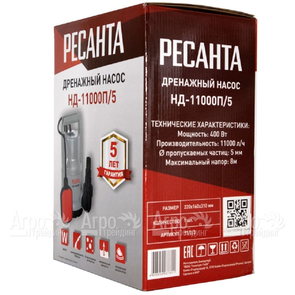 Дренажный насос Ресанта НД-11000П/5
