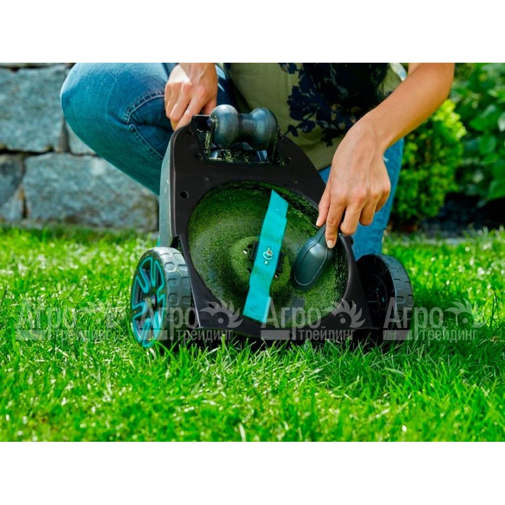 На фотографии Газонокосилка аккумуляторная Gardena Li-18/22: