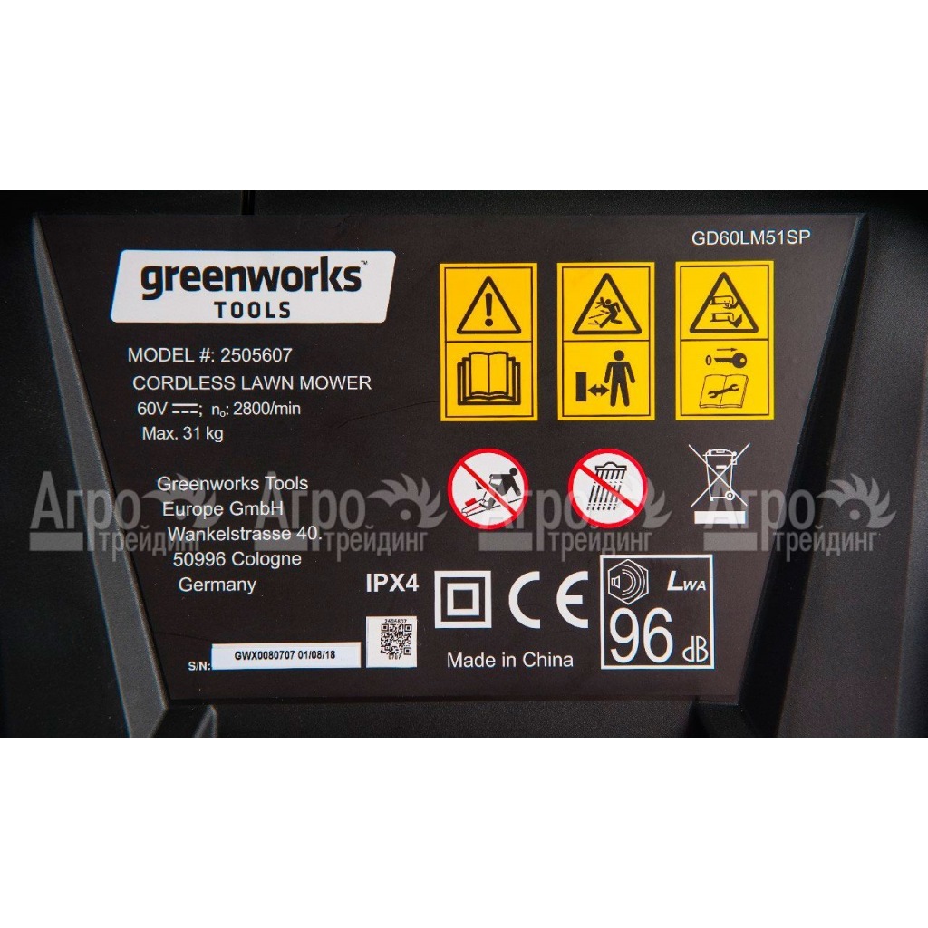 Газонокосилка аккумуляторная GreenWorks GD60LM51SPK4