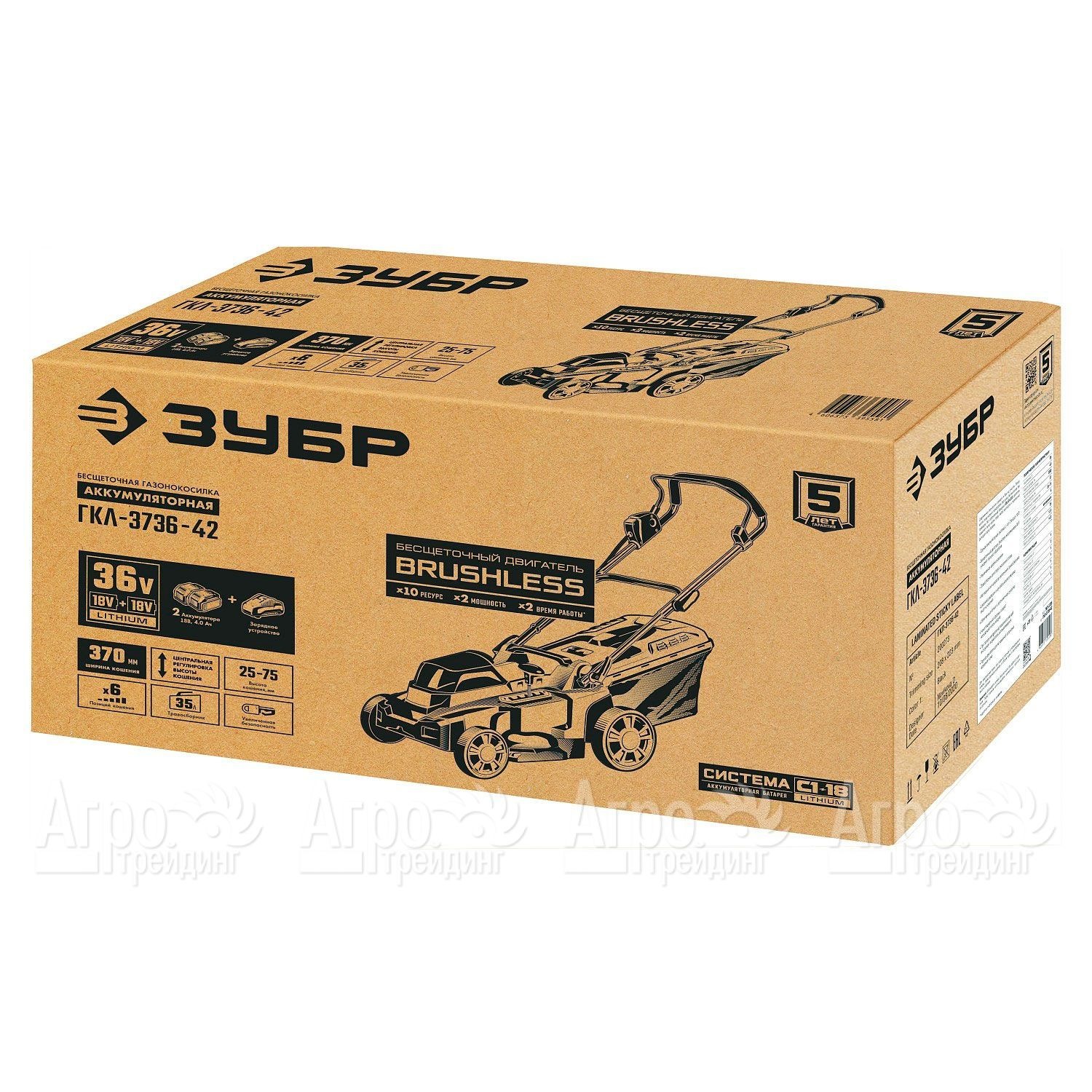 Газонокосилка аккумуляторная Зубр ГКЛ-3736-42