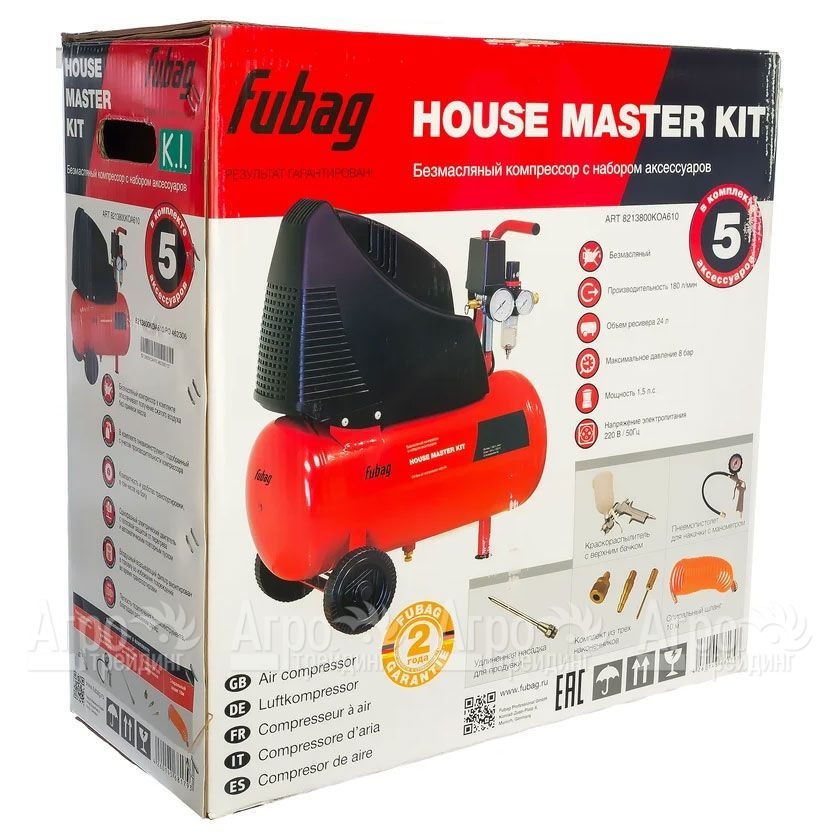 Компрессор поршневой безмасляный Fubag House Master Kit OL195/24 + 5 предметов