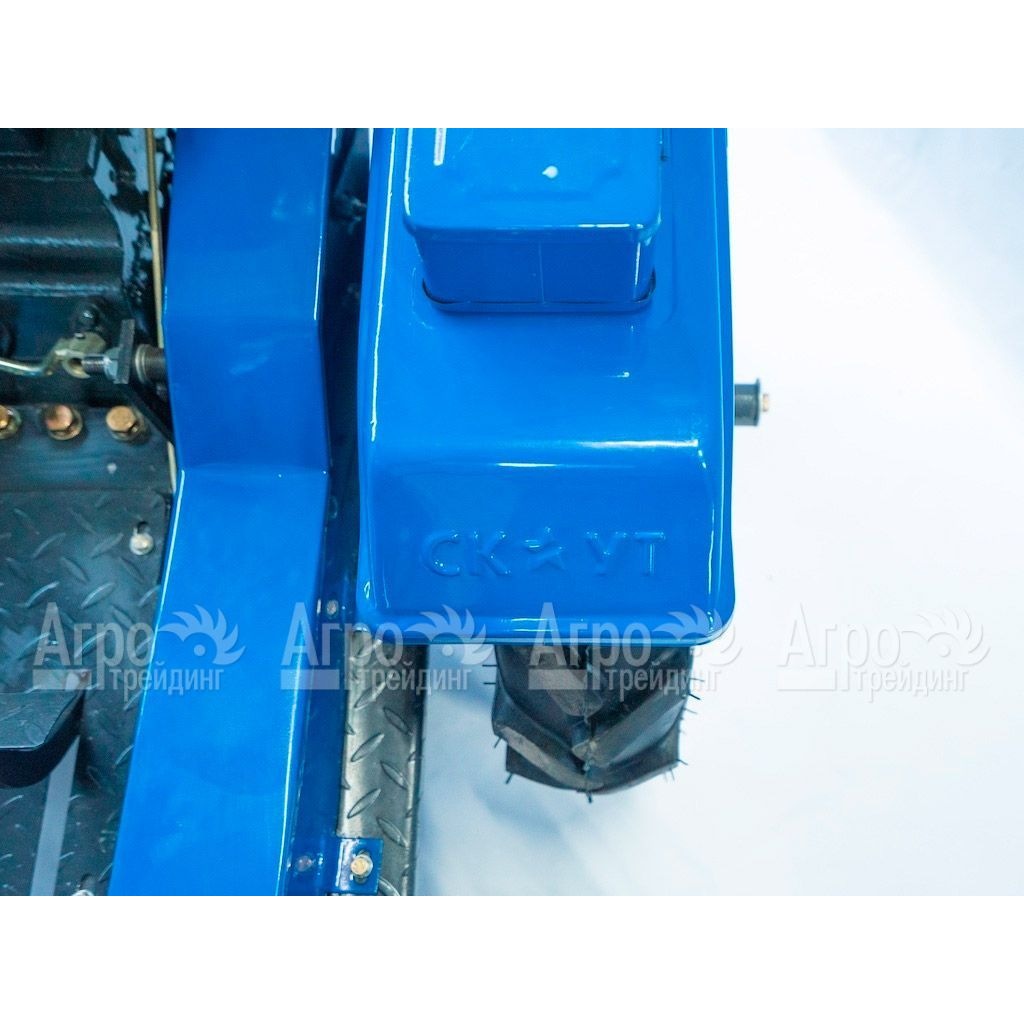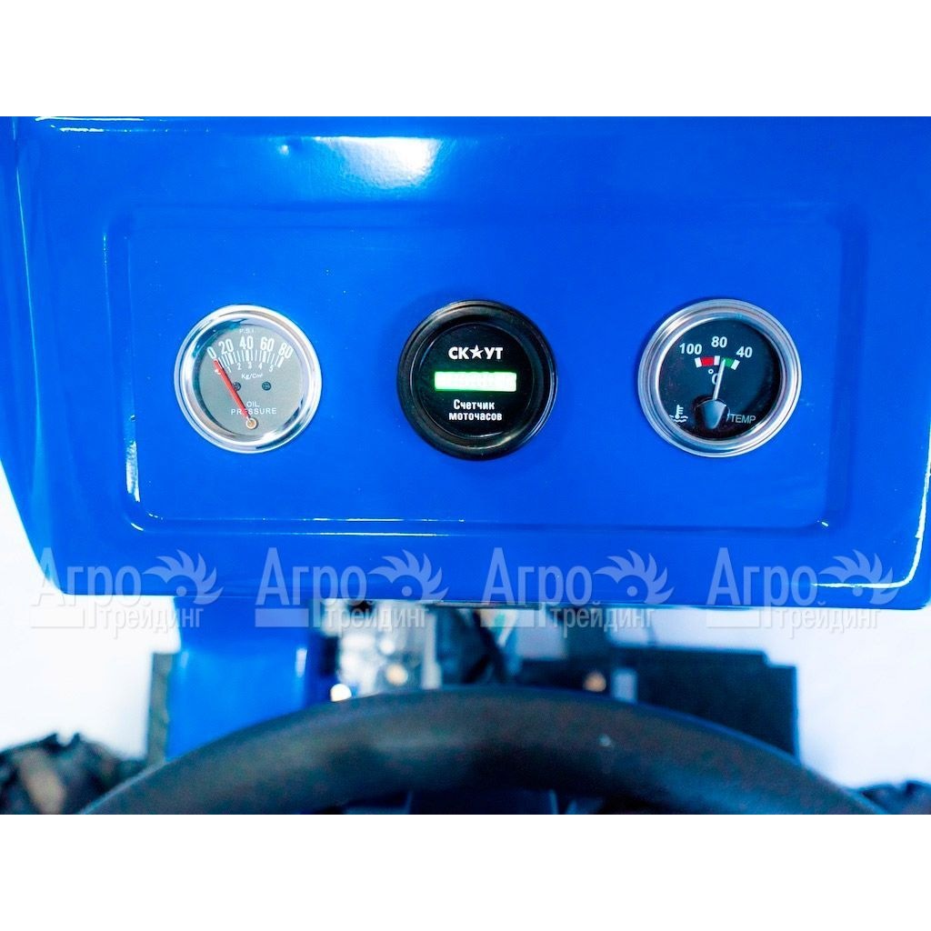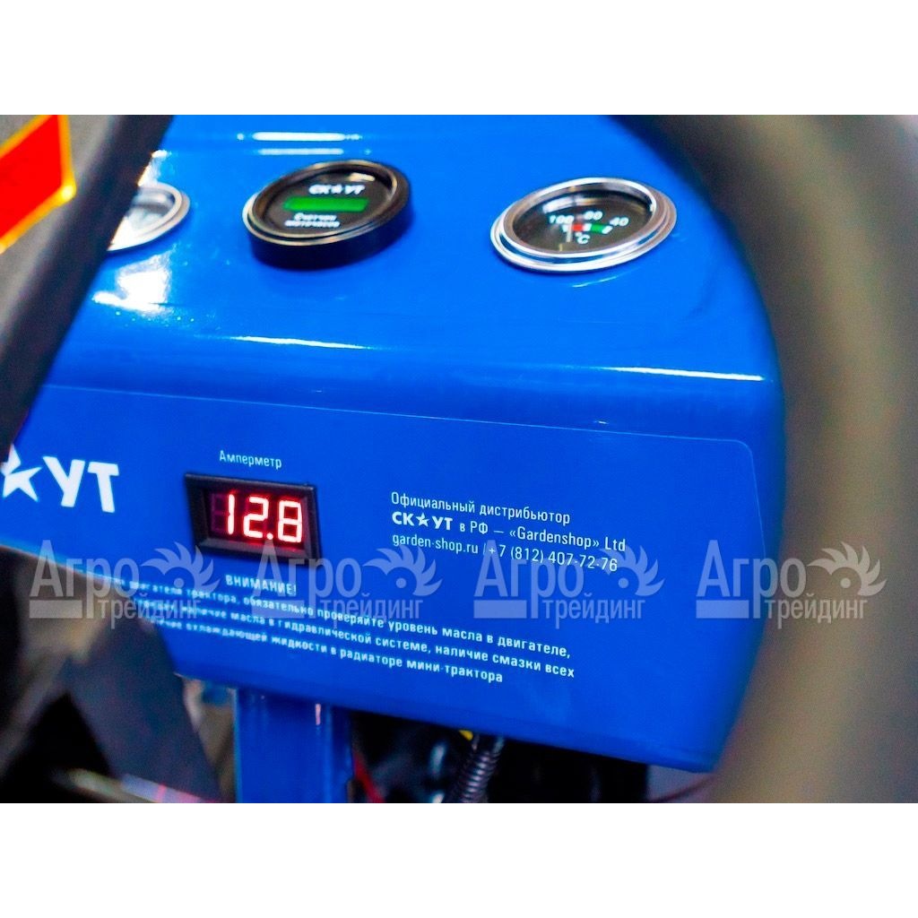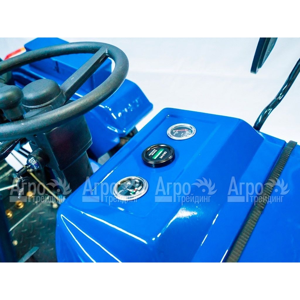 Характеристики товара: Многофункциональный минитрактор Garden Scout (Скаут) T-15DIF VT + почвофреза + двухкопрусный плуг + навесПодробное описание товараМногофункциональный минитрактор Garden Scout (Скаут) T-15DIF VT – это многофункциональная сельскохозяйственная техника для небольших фермерских хозяйств. Особенностью данной модели является возможность регулирования передней и задней колеи. Эта функция позволяет производить междурядную обработку различных культурных растений и удобно собирать урожай. Минитрактор Гарден Скаут T-15DIF VT укомплектован мощным и экономичным дизельным двигателем. Для управления навесным оборудованием предусмотрена гидросистема. При этом её конструкция допускает работать сразу двумя видами инструмента. Например, косилкой и граблями. Приборная панель проста и понятна. Имеется датчик температуры охлаждающей жидкости, датчик давления масла, цифровой амперметр и счётчик моточасов. К преимуществам минитрактора Скаут так же относят высокое качество его агрегатов и деталей, ручную сборку и длительный срок службы. Управлять этой техникой легко и просто. При соблюдении требования инструкции по эксплуатации трактор исправно прослужит очень долго. На фотографии Многофункциональный минитрактор Garden Scout (Скаут) T-15DIF VT + почвофреза + двухкопрусный плуг + навес:
