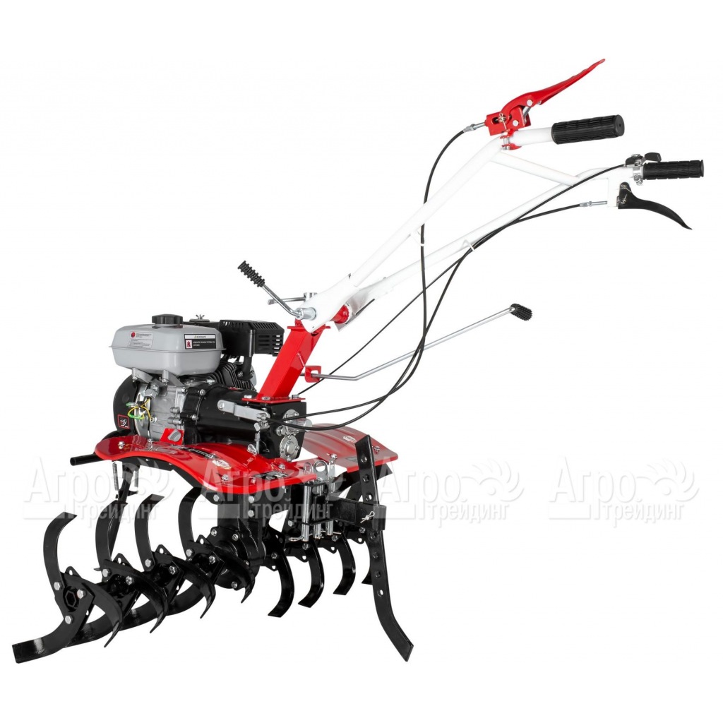 Характеристики товара: Мотоблок Ресанта МБ-8000-БФПодробное описание товараМотоблок Ресанта МБ-8000-БФ относится к категории садово-огородной техники, предназначенной для обработки почвы методом рыхления. Данная модель является универсальной машиной. У неё имеется стандартное прицепное устройство, позволяющее использовать технику, как тягач для прицепа, роторной косилки, бороны и другого оборудования. Основным рабочим инструментом агрегата является стальная фреза. Она изготовлена из закалённого металла и имеет специальную конструкцию, позволяющую легко проникать в почву, подрезая корни сорняков. В качестве силовой установки в мотоблоке используется двигатель внутреннего сгорания, потребляющий недорогой автомобильный бензин. На одной заправке топливного бака можно обработать земельный участок большой площади. Фрезы машины легко снимаются. На их место можно установить колесо с пневмошиной для транспортировки культиватора к месту работы или хранения. Все элементы управления садовой техникой расположены на рукоятках. Агрегат легко движется как вперёд, так и назад, что положительно сказывается на его манёвренности и даёт возможность работать в условиях ограниченного пространства. Среди плюсов мотоблока Ресанта МБ-8000-БФ выделяют его большой рабочий ресурс, экономный расход топлива, наличие глушителя на выхлопной системе и сошника, который модно использовать для регулирования глубины обработки земли. |