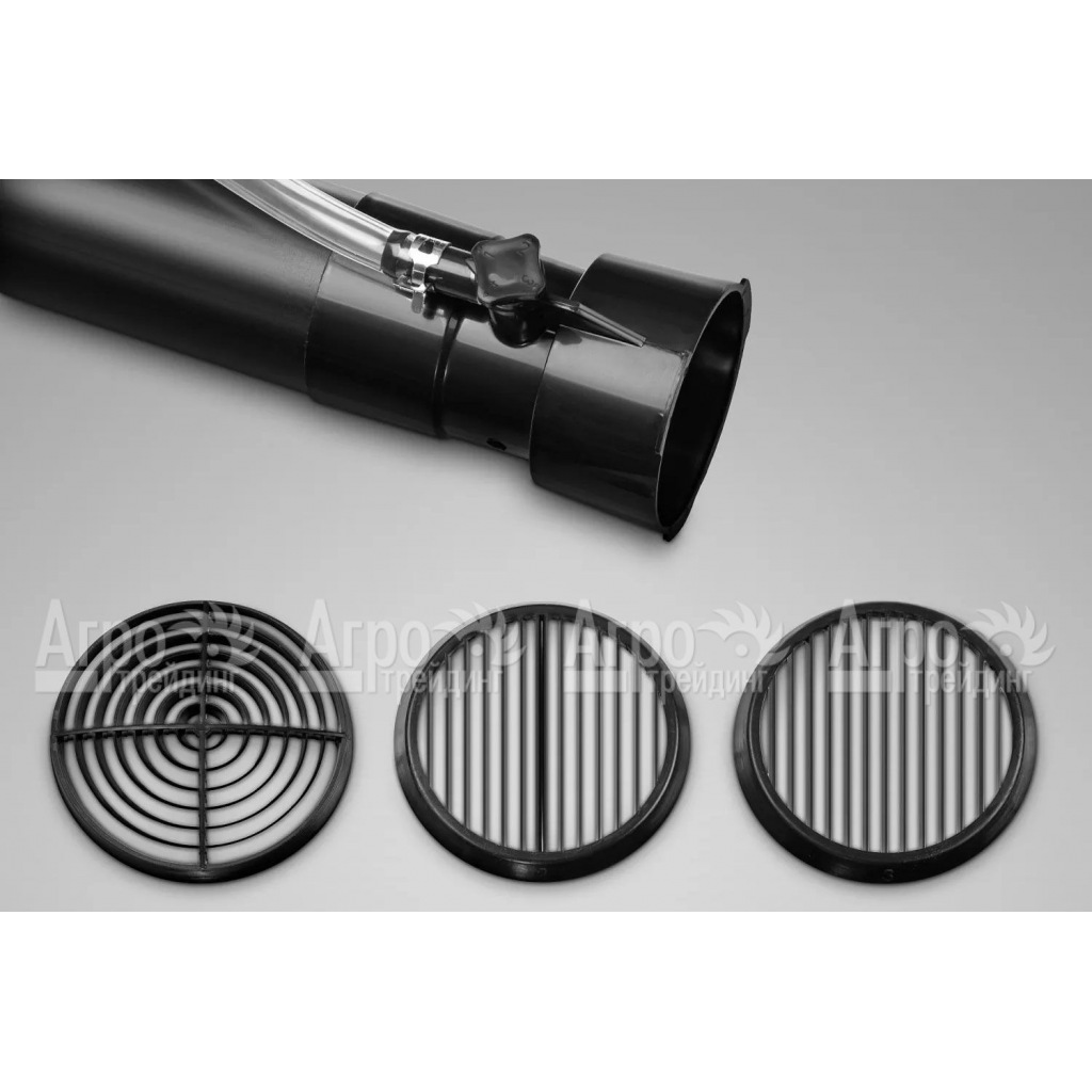 Уникальная функциональность "2в1" позволяет распылять как жидкие, так и сыпучие смеси, обеспечивая универсальность в использовании. Три съемные решетки в комплекте позволяют легко менять форму потока для адаптации под конкретные задачи – от конусообразной струи до направленного или разделенного потока.