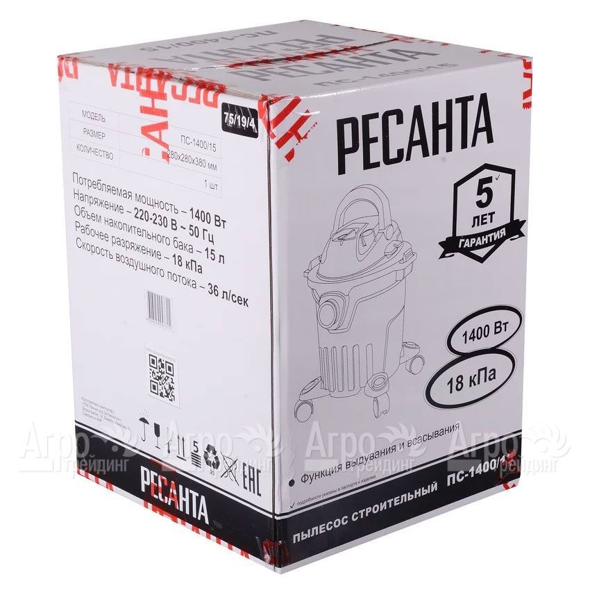 Пылесос строительный Ресанта ПС-1400/15