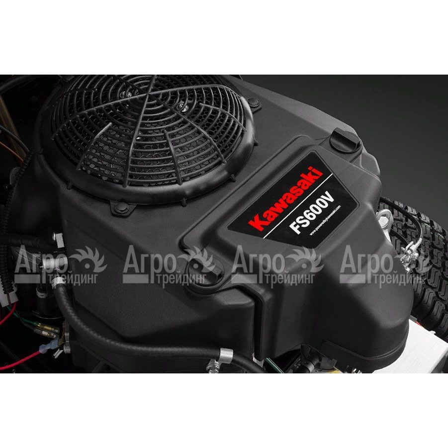 - Мощный двигатель Kawasaki FS600V с двумя цилиндрами обеспечивает высокую производительность и надёжность в работе, что позволяет с лёгкостью справляться с тяжёлыми условиями эксплуатации.