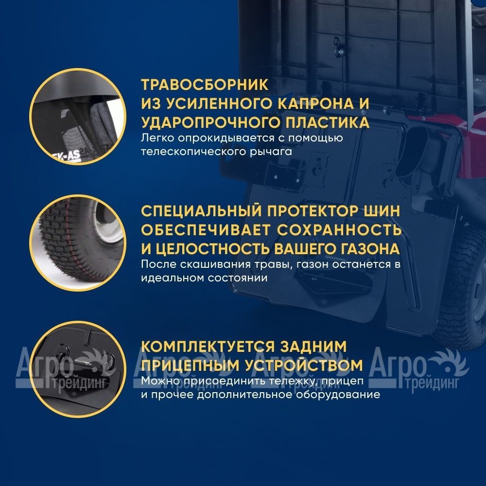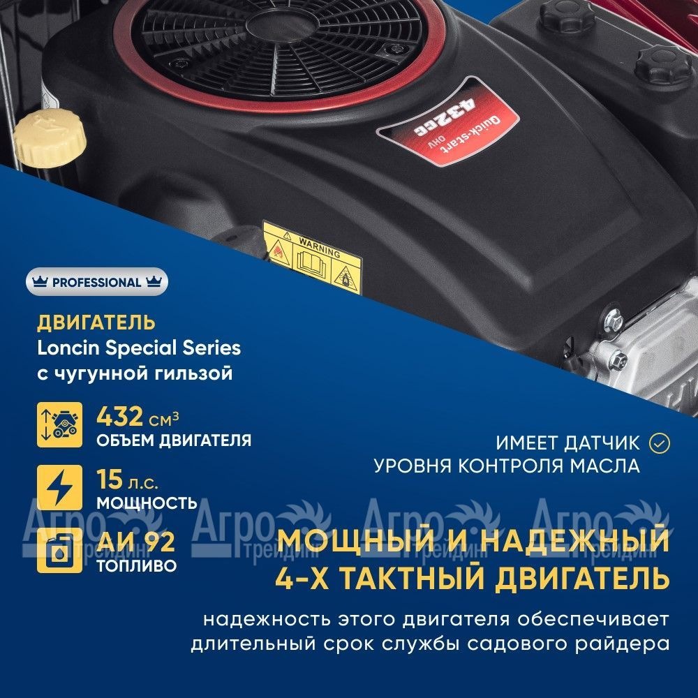 Характеристики товара: Садовый райдер APEK-AS GTS 75 PremiumПодробное описание товараСадовый райдер APEK-AS GTS 75 Premium - самый надежный и мощный райдер в России для кошения на малых, больших участках и склонах. Он превзошел все ожидания, т.к не имеет аналогов не только по качеству сборки, но и по мощности двигателя, ширине деки и другим техническим параметрам. Стоит отметить, что садовый райдер APEK-AS GTS 75 Premium оснащен лицензионным гильзованным двигателем Loncin, мощностью 15,0 л.с бренд которого используется на мотоциклах BMW, он обладает самой надежной в мире гидростатической трансмиссией «Peerless» (Husqvarna) пр-ва USA, имеет функцию кошения Reverse Mowing (скашивание задним ходом), усиленную подвеску, специальный протектор шин и вместительный травосборник, емкостью на 170 л. Широкая дека на 75 см позволяет райдеру регулировать высоту скашивания от 20 до 90 мм, что предоставляет владельцу большую гибкость и возможность точно настроить процесс скашивания под свои предпочтения. Также садовый райдер APEK-AS GTS 75 Premium имеет ряд других преимуществ, в сравнении с конкурентами, например, в отличие от райдеров других производителей, корпуса которых сделаны из пластика, способствующего к трещинам и выцветанию, то основной корпус райдера APEK-AS GTS 75 Premium выполнен из металла. Благодаря наличию бокового выброса травы, райдер позволяет удобно и быстро освобождать скошенную траву. Это значительно упрощает процесс уборки и обеспечивает более эффективную работу. Кроме того, он оснащен функцией мульчирования, которая превращает отработанную траву в органическое удобрение для газонов. Это не только способствует здоровому росту газона, но и сокращает количество отходов на вашей территории. Дополнительно райдер комплектуется задним прицепным устройством, за счет которого вы всегда можете присоединить тележку, прицеп и прочее дополнительное оборудование. APEK-AS GTS 75 Premium - это профессиональный садовый райдер, имеющий полный спектр возможностей и обеспечивающий высочайшую производительность. Он имеет официальную гарантию 5-лет, что подчеркивает его высокий уровень надежности и долговечности. Основные преимущества и оснащение модели: