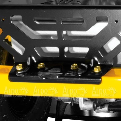 В основе райдера лежит компактный двигатель внутреннего сгорания, потребляющий недорогой автомобильный бензин. Запускается мотор с помощью электрического стартера. В качестве режущего инструмента используются три стальных ножа со специальной заточкой. Высота кошения регулируется в нескольких вариантах. Привод на ножи отдельный. Данная функция делает работу техники безопасной и производительной. Кресло оператора регулируется рычагами. Для работы в тёмное время суток имеются яркие светодиодные фары. Широкие резиновые колёса не оставляют следов на газоне.