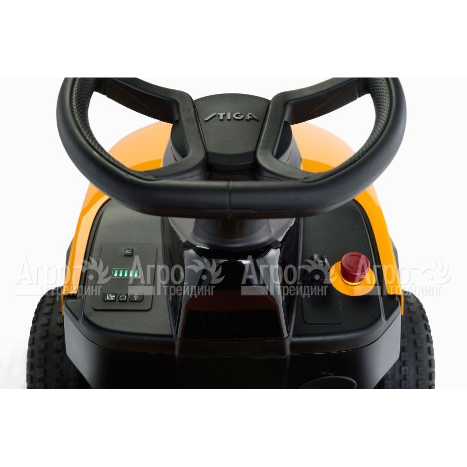 Характеристики товара: Садовый трактор Stiga Tornado 398eПодробное описание товараСадовый трактор Stiga Tornado 398e – это небольшая самоходная машина, предназначенная для кошения газонов средней площади. Такая модель используется на придомовой территории, на даче или в саду. Будет полезен агрегат организациям ЖКХ, управляющим компаниям и учреждениям, занимающимся обслуживанием земельных участков. Особенностью трактора является его простота эксплуатации, экономичность, экологичность и длительный срок службы. Электрический двигатель машины запускается нажатием кнопки, расположенной на панели управления. Режущая часть представлена плавающей декой и роторными ножами. Такая конструкция позволяет выкашивать не только ровные участки, но и газоны со сложным рельефом. Высоту кошения регулируют рычагом. Скошенная трава отбрасывается в стороны. Имеется функция мульчирования растительной срезки, превращающая её в удобрение для газонов. Гидростатическая трансмиссия даёт возможность плавно, без рывков изменять скорость движение техники, косить задним ходом. К дополнительным плюсам садового трактора Stiga Tornado 398e относят наличие современных литий-ионных АКБ, питающих электроприборы машины, светодиодных фар, удобного кресла оператора, интуитивно понятной системы управления. |