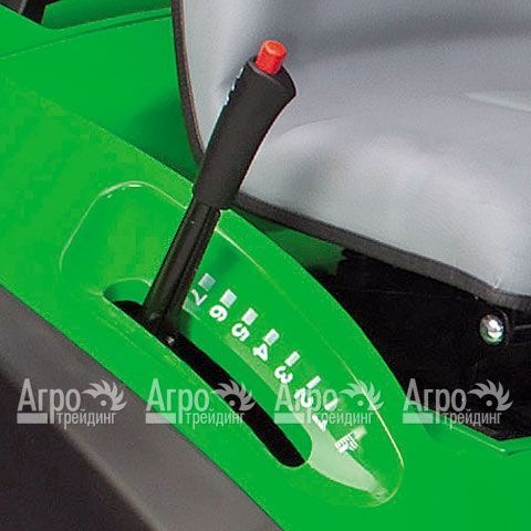 Установка накопительного контейнера на трактор выполняется быстро и просто, разгрузка контейнера производится прямо с сиденья, при помощи саблевидной рукоятки. При включении стояночного тормоза трактор останавливается и не скатывается с наклонной поверхности участка. Запуск двигателя обеспечивается ключом зажигания. Для заправки топлива капот двигателя открывать не требуется. Рабочее кресло водителя регулируется соответственно росту оператора. Широкий профиль шин на колесах не повреждают газон.