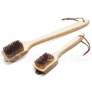 Ручки из древесины твердых пород и латунная щетина не заржавеют. На каждой щетке есть скребок для неподатливого нагара.